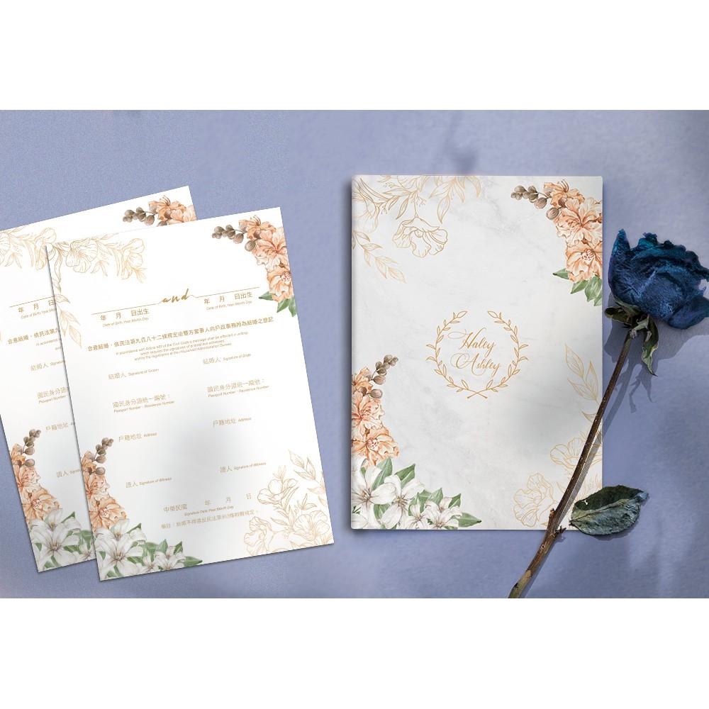 商品:精裝裱版結婚證書夾  尺寸:29.2x20.3公分 材質:(封面) 彩色印刷 書約符合戶政事務所的規定,書約無印新人名字...等個人資訊,需自行手寫資料上去及簽名喔 說明:封面可印製新人名、婚期    下單後,請提供    1.新人名字( 如不印名字也可以更換其他文字)    2.登記日/婚期/紀念 (不確定日期建議不印) 證書夾封面會提供校稿確認,如內容有任何問題請於印製前提出,如確認定稿後無法幫您重印或修改~請知悉! 製作流程: 蝦皮下單並提供資料→排稿&確認(依校稿時間而定)→定稿→印刷(7天)→寄出 ★如有不清楚的地方歡迎用聊聊詢問喔! ⛔此商品屬 「依消費者要求所為之客製化給付」,不適用7天鑑賞期法規。 ⛔客製商品~恕不提供貨到付款服務 ★螢幕顯示與印刷成品會產生色差。(電腦螢幕,因不同品牌、型號及個別色彩設定參數,也會造成顏色觀看上的不同。 ★證書夾表面皆有上膜處理,霧膜會讓印刷品表面有霧化效果,顏色也會較沉哦。 👉如要加購證書夾周邊(雙側緞帶、書約、婚紗照等)請這邊加購 https://shopee.tw/product/149788736/6833099092/ https://s-cf-tw.shopeesz.com/file/tw-11134208-7qul3-lhyk3ml19jtc0b https://s-cf-tw.shopeesz.com/file/tw-11134208-7qul5-lhyk3ml1ayds16 ★辦理結婚登記時請攜帶以下文件: 1.結婚書約 2.雙方之戶口名簿 3.雙方之國民身分證/若為外籍人士需帶護照 4.新式身分證規格照片各1張 5.換領國民身分證各50元規費、戶口名簿各30元規費 ★注意: 1.結婚當事人兩位需要在登記當日親自到戶政事務所辦理,但結婚書約上簽名的兩位證人不需要到現場。 2.可以向任一戶政事務所辦理結婚登記。若需同時辦理遷入戶籍,則應選擇遷入地戶政事務所辦理。 #婚禮小物 #婚禮週邊 #簽名綢 #貼紙 #結婚書夾 #結婚證書 #結婚書約 #登記專用 #婚禮 #婚約