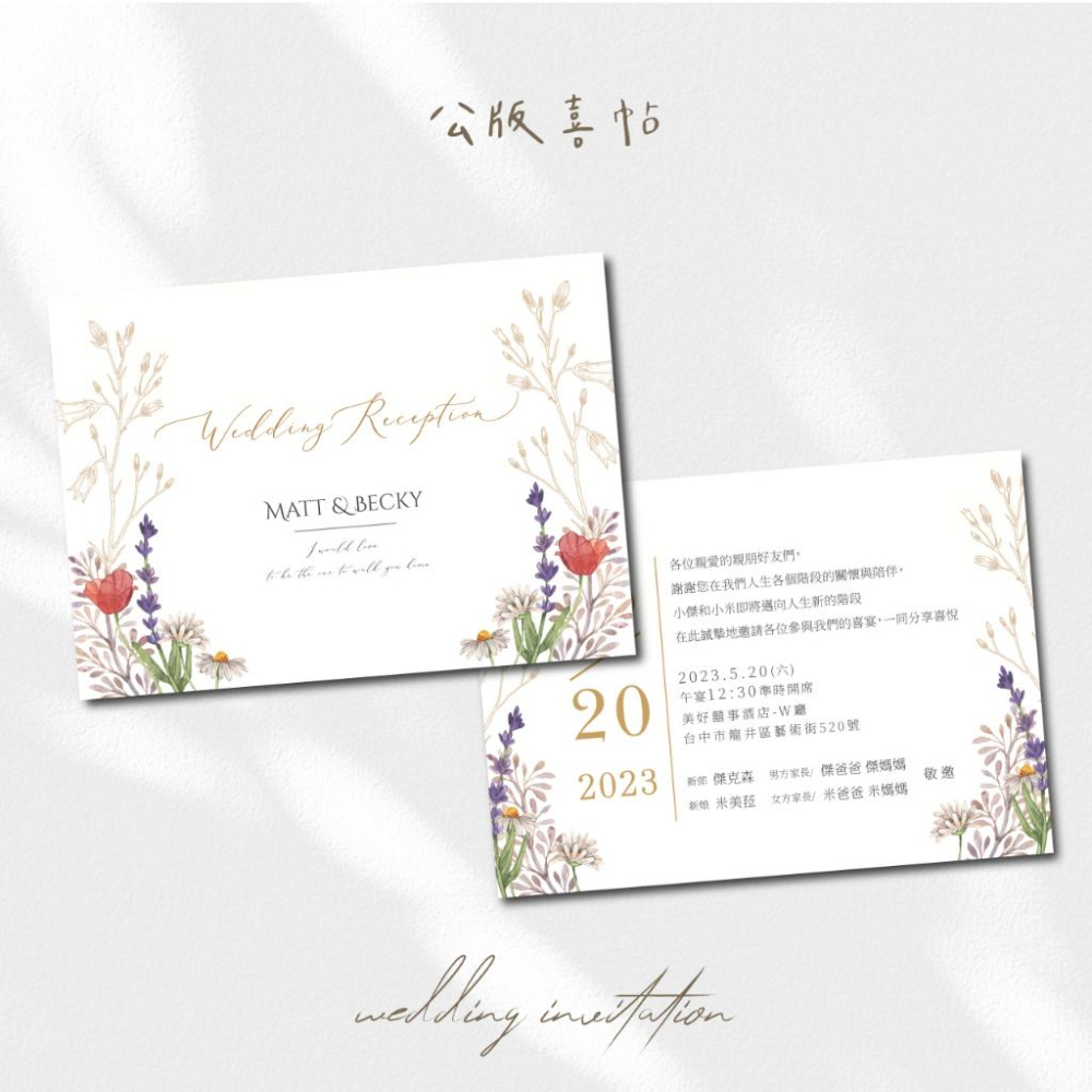 🧡韓式喜帖 ★頁面價格為喜帖單價,訂購數量以10為單位, 20張、30張、40 張、50張 ...以此類推 ★同款式&內容為一版,不同版 數量請分開累計 ★請先備好喜帖資料,確定婚禮時間 再做訂購 ★預設紙材使用星幻卡(285g),如需要其他紙材可另外詢問 👉製作流程: ✦流程:挑選款式 ➔ 下單並完成付款 ➔ 傳資料 ➔ 排版 ➔ 校稿 ➔ 沒問題後再印刷 ♡ ★下單後請提供以下資料 1.新郎/新娘名字 2.男方/女方家長名字 3.結婚日期/宴客時間/星期 4.宴客地點(婚宴餐廳名稱/地址) 5.版面與字體編號(可以選擇範例圖片版面,或者版面A-L擇1;字體如有指定也請備註編號) 6.如選擇的款式有照片,照片請另傳至信箱(聊聊詢問提供信箱位置) 7.如選擇套組,請選擇信封顏色&封口貼編號 👉訂購方式:請依需求選擇對應數量與項目作下單 例如:需要數量70張,請選擇項目[ 70張(單價) ] 數量輸入 70  例如:需要數量100張,請選擇項目[ 100張(單價) ] 數量輸入 100  以此類推,系統會自動帶入總金額 A:單購-卡片尺寸:11.5x16cm (單張雙面) B:套組-卡片(11.5x16cm)+信封&封口貼(套組含卡片+250g厚磅珠光信封(17.6 x12.6 cm)三款顏色可選,和3.5cm信封圓貼) 👉紙卡材質:(如未指定,將以星幻卡印刷) ①星幻紙卡:紙材非純白色 底色顯淡黃色光澤 印刷成品帶珠光效果 ②瑞典一級卡:一般的紙卡.但比一般紙材稍微再厚一些些 ③象牙卡:紙張平滑且紮實,色彩沈穩,印刷色彩飽和度低 ④雅紋紙:表面帶有細小的水波橫紋,質感雅緻,觸感溫柔適中 ⑤細紋紙:紙張有不規則細沙狀的壓紋,觸感特殊 📢備註: 1.每張的所有圖文皆需相同,如不同內容數量請分開累計。 2.建議您確認印刷張數,並加上備用張數後再下單,若未來追加,數量重新累計,以另一筆訂單計算。 3.定稿排印後,無法接受臨時取消或訂單與內容修改。 4.內容校對再煩請確實校對無誤,若確認過後送印才發現資訊錯誤或錯字,由買家負擔重印的費用。 5.客製商品不適用七天鑑賞期,商品送印刷後,無法取消或退貨。 ⚠️關於色差 螢幕色彩以及印刷色彩的色域並不相同,故會顯現不同的色彩。簡單來說印刷色彩顏色偏暗,油墨印不出一些特別明亮色彩,印刷也會因會紙張的不同而影響顏色。故收到印刷品與螢幕上所看到的圖稿會有所色差皆為正常的哦。 ★螢幕色彩為RGB→透過發光的螢幕色彩都比較鮮豔明亮 ★印刷則為CMYK→印刷成品會比螢幕色彩彩度偏暗一些哦! 印刷品輸出之色差值,無法以客戶之螢幕為基準。因不同紙材、每一批墨水跟印製時間,皆會影響圖型整體色彩,如對於顏色有精準的要求 請勿下單!  ⛔此商品屬 「依消費者要求所為之客製化給付」,不適用7天鑑賞期法規。 ⛔客製商品~恕不提供貨到付款服務 #單張喜帖 #明信片單張喜帖 #簡約風格喜帖 #大理石喜帖 #紅色系喜帖 #明信片式喜帖 #創意喜帖 #喜帖 #婚卡 #請柬 #結婚請柬