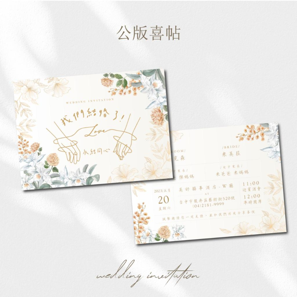 🧡韓式喜帖 ★頁面價格為喜帖單價,訂購數量以10為單位, 20張、30張、40 張、50張 ...以此類推 ★同款式&內容為一版,不同版 數量請分開累計 ★請先備好喜帖資料,確定婚禮時間 再做訂購 ★預設紙材使用星幻卡(285g),如需要其他紙材可另外詢問 👉製作流程: ✦流程:挑選款式 ➔ 下單並完成付款 ➔ 傳資料 ➔ 排版 ➔ 校稿 ➔ 沒問題後再印刷 ♡ ★下單後請提供以下資料 1.新郎/新娘名字 2.男方/女方家長名字 3.結婚日期/宴客時間/星期 4.宴客地點(婚宴餐廳名稱/地址) 5.版面與字體編號(可以選擇範例圖片版面,或者版面A-L擇1;字體如有指定也請備註編號) 6.如選擇的款式有照片,照片請另傳至信箱(聊聊詢問提供信箱位置) 7.如選擇套組,請選擇信封顏色&封口貼編號 👉訂購方式:請依需求選擇對應數量與項目作下單 例如:需要數量70張,請選擇項目[ 70張(單價) ] 數量輸入 70  例如:需要數量100張,請選擇項目[ 100張(單價) ] 數量輸入 100  以此類推,系統會自動帶入總金額 A:單購-卡片尺寸:11.5x16cm (單張雙面) B:套組-卡片(11.5x16cm)+信封&封口貼(套組含卡片+250g厚磅珠光信封(17.6 x12.6 cm)三款顏色可選,和3.5cm信封圓貼) 👉紙卡材質:(如未指定,將以星幻卡印刷) ①星幻紙卡:紙材非純白色 底色顯淡黃色光澤 印刷成品帶珠光效果 ②瑞典一級卡:一般的紙卡.但比一般紙材稍微再厚一些些 ③象牙卡:紙張平滑且紮實,色彩沈穩,印刷色彩飽和度低 ④雅紋紙:表面帶有細小的水波橫紋,質感雅緻,觸感溫柔適中 ⑤細紋紙:紙張有不規則細沙狀的壓紋,觸感特殊 📢備註: 1.每張的所有圖文皆需相同,如不同內容數量請分開累計。 2.建議您確認印刷張數,並加上備用張數後再下單,若未來追加,數量重新累計,以另一筆訂單計算。 3.定稿排印後,無法接受臨時取消或訂單與內容修改。 4.內容校對再煩請確實校對無誤,若確認過後送印才發現資訊錯誤或錯字,由買家負擔重印的費用。 5.客製商品不適用七天鑑賞期,商品送印刷後,無法取消或退貨。 ⚠️關於色差 螢幕色彩以及印刷色彩的色域並不相同,故會顯現不同的色彩。簡單來說印刷色彩顏色偏暗,油墨印不出一些特別明亮色彩,印刷也會因會紙張的不同而影響顏色。故收到印刷品與螢幕上所看到的圖稿會有所色差皆為正常的哦。 ★螢幕色彩為RGB→透過發光的螢幕色彩都比較鮮豔明亮 ★印刷則為CMYK→印刷成品會比螢幕色彩彩度偏暗一些哦! 印刷品輸出之色差值,無法以客戶之螢幕為基準。因不同紙材、每一批墨水跟印製時間,皆會影響圖型整體色彩,如對於顏色有精準的要求 請勿下單!  ⛔此商品屬 「依消費者要求所為之客製化給付」,不適用7天鑑賞期法規。 ⛔客製商品~恕不提供貨到付款服務 #單張喜帖 #明信片單張喜帖 #簡約風格喜帖 #大理石喜帖 #紅色系喜帖 #明信片式喜帖 #創意喜帖 #喜帖 #婚卡 #請柬 #結婚請柬