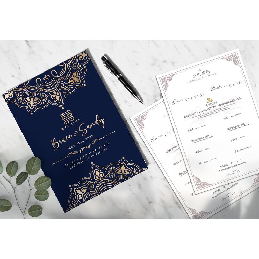 結婚證書夾 - 藍色圖騰結婚書約夾 贈結婚書約 結婚登記專用 結婚證書夾 書約夾 結婚證書 結婚書