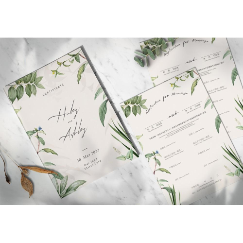 https://s-cf-tw.shopeesz.com/file/tw-11134208-7r98p-ltm85yhse8of18 商品:精裝裱版結婚證書夾  尺寸:29.2x20.3公分 材質:(封面) 彩色印刷 書約符合戶政事務所的規定,書約無印新人名字...等個人資訊,需自行手寫資料上去及簽名喔 說明:封面可印製新人名、婚期    下單後,請提供    1.新人名字( 如不印名字也可以更換其他文字)    2.登記日/婚期/紀念 (不確定日期建議不印) 證書夾封面會提供校稿確認,如內容有任何問題請於印製前提出,如確認定稿後無法幫您重印或修改~請知悉! 製作流程: 蝦皮下單並提供資料→排稿&確認(依校稿時間而定)→定稿→印刷(7天)→寄出 ★如有不清楚的地方歡迎用聊聊詢問喔! ⛔此商品屬 「依消費者要求所為之客製化給付」,不適用7天鑑賞期法規。 ⛔客製商品~恕不提供貨到付款服務 ★螢幕顯示與印刷成品會產生色差。(電腦螢幕,因不同品牌、型號及個別色彩設定參數,也會造成顏色觀看上的不同。 ★證書夾表面皆有上膜處理,霧膜會讓印刷品表面有霧化效果,顏色也會較沉哦。 👉如要加購證書夾周邊(雙側緞帶、書約、婚紗照等)請這邊加購 https://shopee.tw/product/149788736/6833099092/ ★辦理結婚登記時請攜帶以下文件: 1.結婚書約 2.雙方之戶口名簿 3.雙方之國民身分證/若為外籍人士需帶護照 4.新式身分證規格照片各1張 5.換領國民身分證各50元規費、戶口名簿各30元規費 ★注意: 1.結婚當事人兩位需要在登記當日親自到戶政事務所辦理,但結婚書約上簽名的兩位證人不需要到現場。 2.可以向任一戶政事務所辦理結婚登記。若需同時辦理遷入戶籍,則應選擇遷入地戶政事務所辦理。 #婚禮小物 #婚禮週邊 #簽名綢 #貼紙 #結婚書夾 #結婚證書 #結婚書約 #登記專用 #婚禮 #婚約