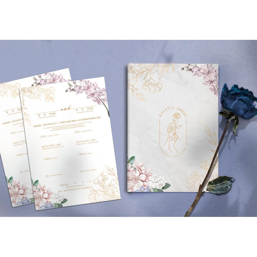 商品:精裝裱版結婚證書夾  尺寸:29.2x20.3公分 材質:(封面) 彩色印刷 書約符合戶政事務所的規定,書約無印新人名字...等個人資訊,需自行手寫資料上去及簽名喔 說明:封面可印製新人名、婚期    下單後,請提供    1.新人名字( 如不印名字也可以更換其他文字)    2.登記日/婚期/紀念 (不確定日期建議不印) 證書夾封面會提供校稿確認,如內容有任何問題請於印製前提出,如確認定稿後無法幫您重印或修改~請知悉! 製作流程: 蝦皮下單並提供資料→排稿&確認(依校稿時間而定)→定稿→印刷(7天)→寄出 ★如有不清楚的地方歡迎用聊聊詢問喔! ⛔此商品屬 「依消費者要求所為之客製化給付」,不適用7天鑑賞期法規。 ⛔客製商品~恕不提供貨到付款服務 ★螢幕顯示與印刷成品會產生色差。(電腦螢幕,因不同品牌、型號及個別色彩設定參數,也會造成顏色觀看上的不同。 ★證書夾表面皆有上膜處理,霧膜會讓印刷品表面有霧化效果,顏色也會較沉哦。 👉如要加購證書夾周邊(雙側緞帶、書約、婚紗照等)請這邊加購 https://shopee.tw/product/149788736/6833099092/ https://s-cf-tw.shopeesz.com/file/tw-11134208-7qul9-lhyk3ml1kscw5b https://s-cf-tw.shopeesz.com/file/tw-11134208-7qul0-lhym8q9pb3dab0 ★辦理結婚登記時請攜帶以下文件: 1.結婚書約 2.雙方之戶口名簿 3.雙方之國民身分證/若為外籍人士需帶護照 4.新式身分證規格照片各1張 5.換領國民身分證各50元規費、戶口名簿各30元規費 ★注意: 1.結婚當事人兩位需要在登記當日親自到戶政事務所辦理,但結婚書約上簽名的兩位證人不需要到現場。 2.可以向任一戶政事務所辦理結婚登記。若需同時辦理遷入戶籍,則應選擇遷入地戶政事務所辦理。 #婚禮小物 #婚禮週邊 #簽名綢 #貼紙 #結婚書夾 #結婚證書 #結婚書約 #登記專用 #婚禮 #婚約