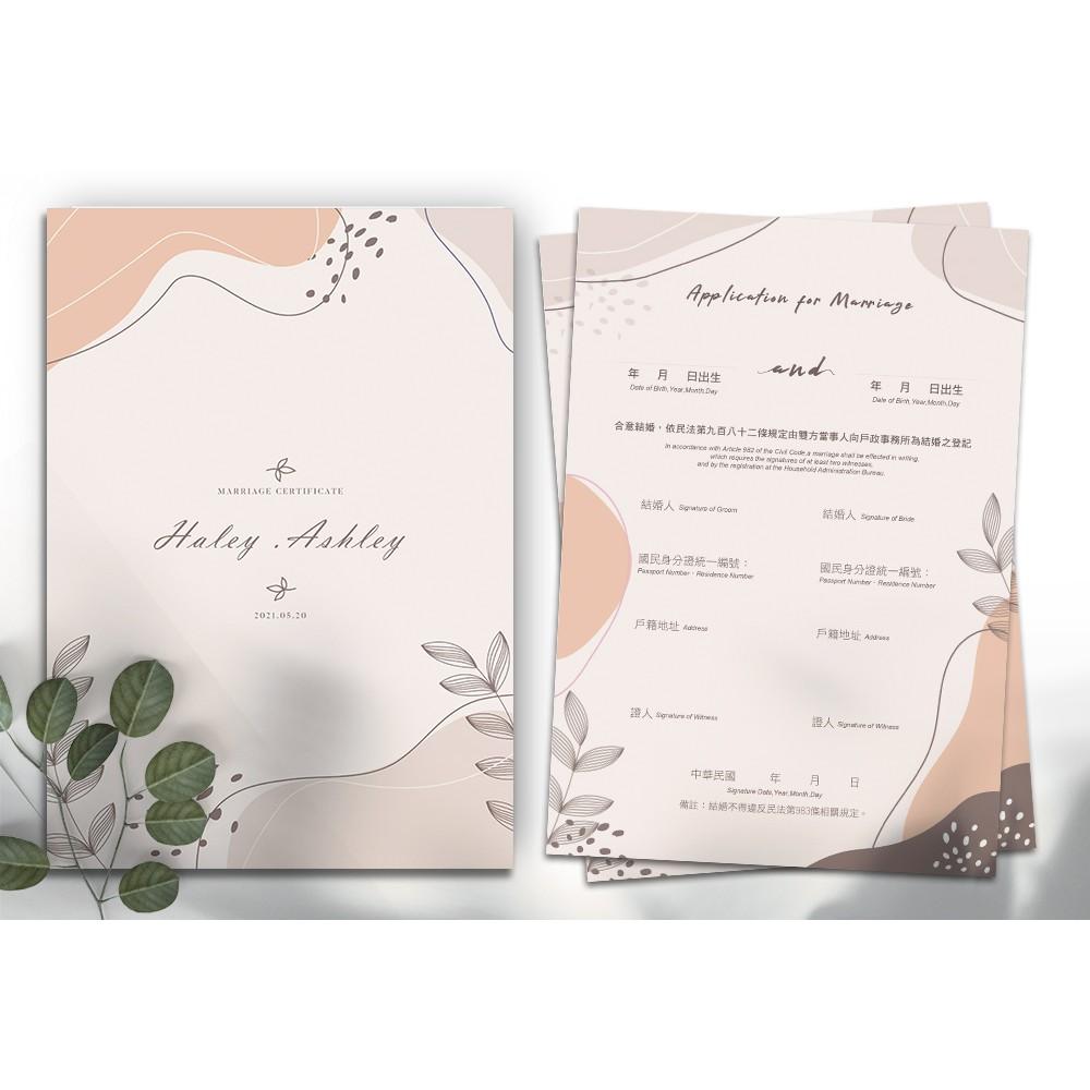 商品:精裝裱版結婚證書夾  尺寸:29.2x20.3公分 材質:(封面) 彩色印刷 書約符合戶政事務所的規定,書約無印新人名字...等個人資訊,需自行手寫資料上去及簽名喔 說明:封面可印製新人名、婚期    下單後,請提供    1.新人名字( 如不印名字也可以更換其他文字)    2.登記日/婚期/紀念 (不確定日期建議不印) 證書夾封面會提供校稿確認,如內容有任何問題請於印製前提出,如確認定稿後無法幫您重印或修改~請知悉! 製作流程: 蝦皮下單並提供資料→排稿&確認(依校稿時間而定)→定稿→印刷(7天)→寄出 ★如有不清楚的地方歡迎用聊聊詢問喔! ⛔此商品屬 「依消費者要求所為之客製化給付」,不適用7天鑑賞期法規。 ⛔客製商品~恕不提供貨到付款服務 ★螢幕顯示與印刷成品會產生色差。(電腦螢幕,因不同品牌、型號及個別色彩設定參數,也會造成顏色觀看上的不同。 ★證書夾表面皆有上膜處理,霧膜會讓印刷品表面有霧化效果,顏色也會較沉哦。 👉如要加購證書夾周邊(雙側緞帶、書約、婚紗照等)請這邊加購 https://shopee.tw/product/149788736/6833099092/ ★辦理結婚登記時請攜帶以下文件: 1.結婚書約 2.雙方之戶口名簿 3.雙方之國民身分證/若為外籍人士需帶護照 4.新式身分證規格照片各1張 5.換領國民身分證各50元規費、戶口名簿各30元規費 ★注意: 1.結婚當事人兩位需要在登記當日親自到戶政事務所辦理,但結婚書約上簽名的兩位證人不需要到現場。 2.可以向任一戶政事務所辦理結婚登記。若需同時辦理遷入戶籍,則應選擇遷入地戶政事務所辦理。 #婚禮小物 #婚禮週邊 #簽名綢 #貼紙 #結婚書夾 #結婚證書 #結婚書約 #登記專用 #婚禮 #婚約