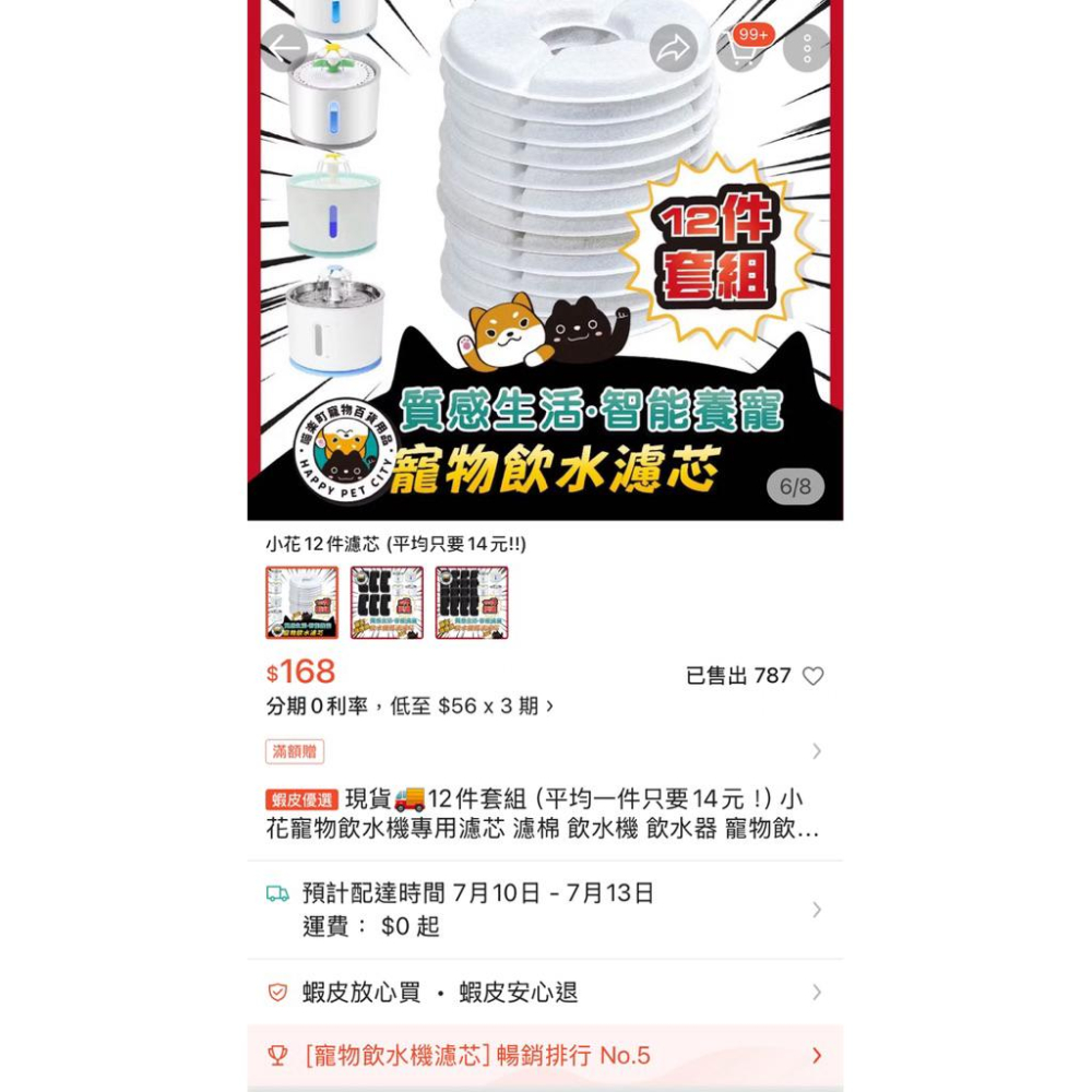 在蝦皮賣家貓樂町購買的寵物飲水機濾芯,當時買12入,但後期換新的飲水機,還剩6片未拆封使用,不想浪費掉,故低價出清,希望有人能幫我用完他😄(不單片拆售) 圖片有附上購買證明、目前庫存現貨照、濾芯相關介紹,有相關問題也歡迎私訊🙏