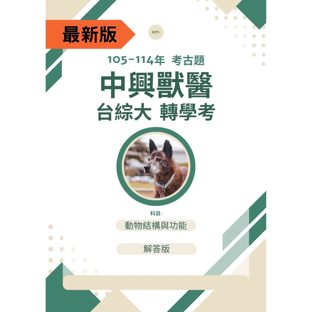 中興大學 獸醫系 轉學考 動物結構與功能 二年級 歷屆解答