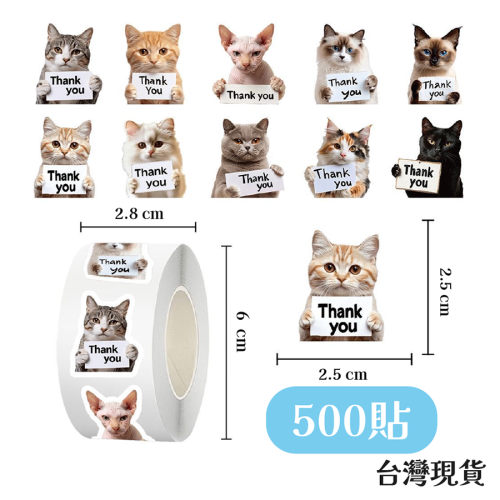 商品名稱: 500貼貓咪感謝貼紙