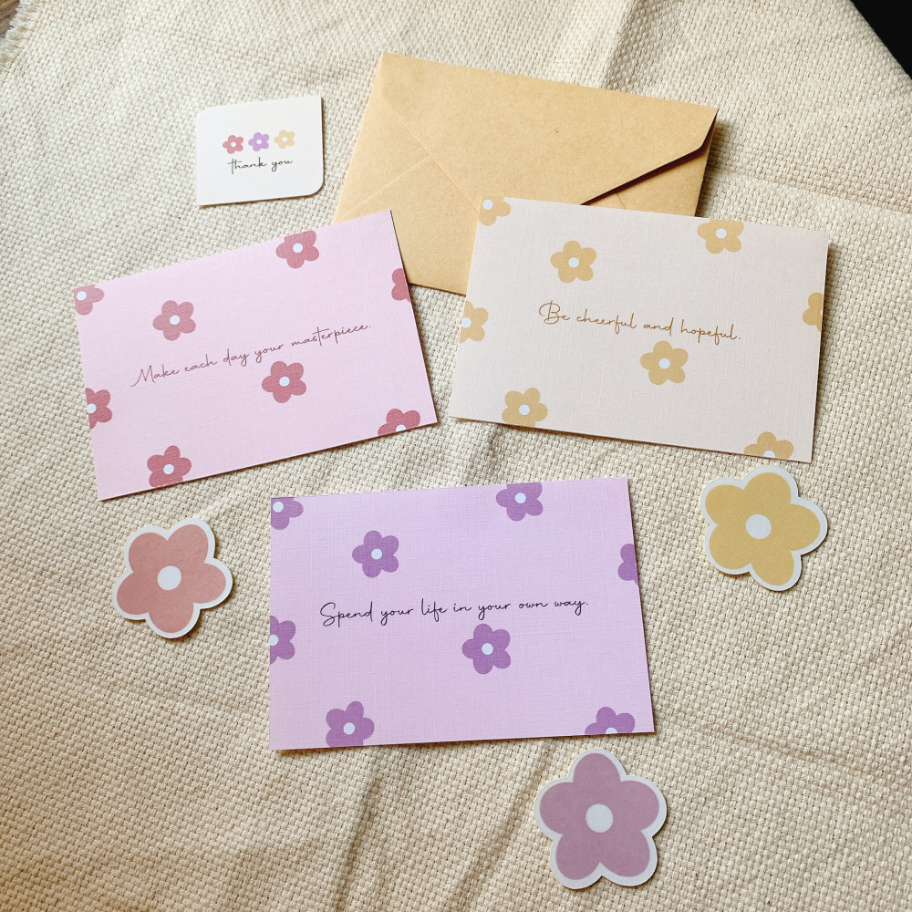 ➤規格尺寸:每張卡片約6.8x10cm 誤差±0.1cm、信封10.5x7.3cm、花朵貼紙採霧膜質感