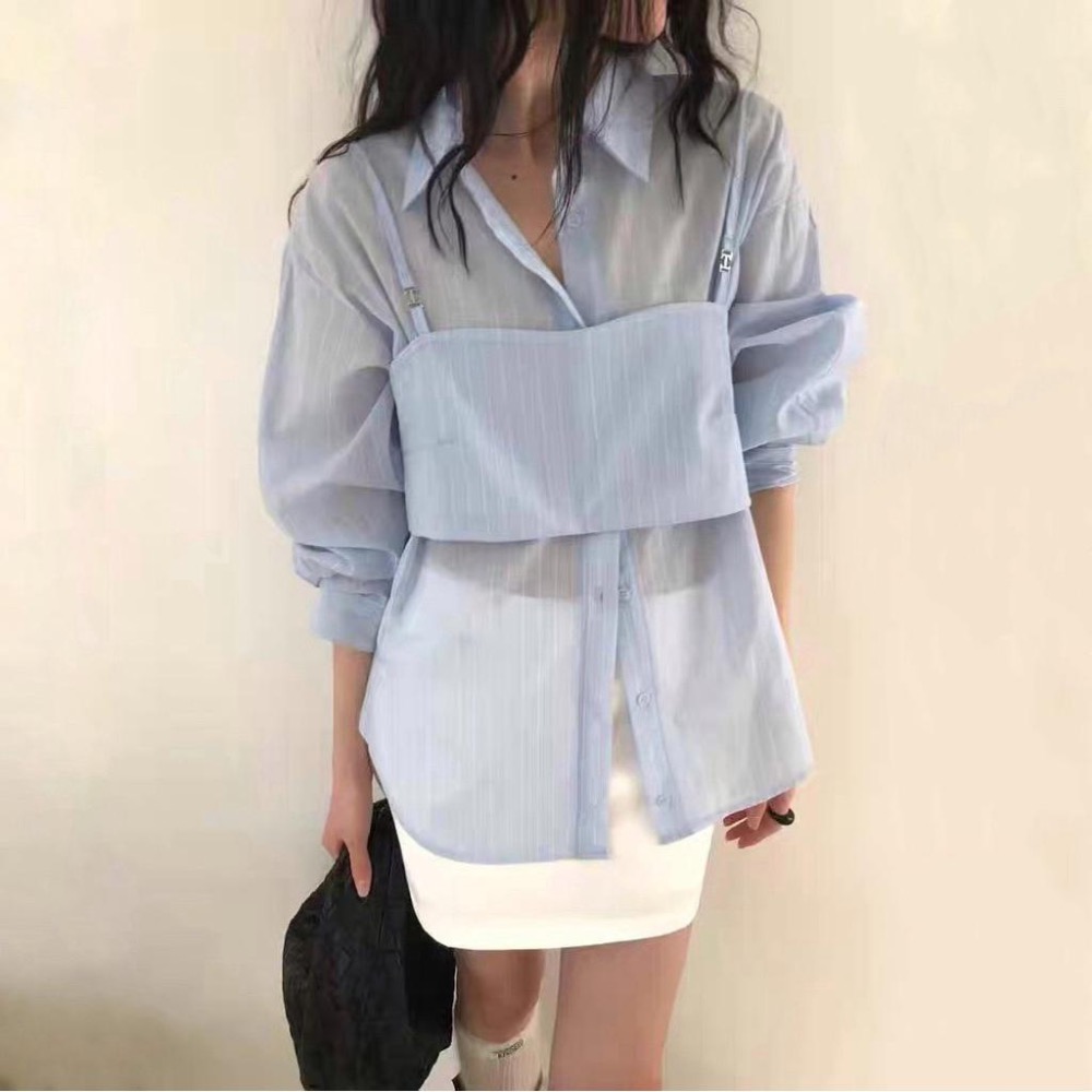 #No.2 #無二 #選物 #選物店 #韓國 #不撞款 #小眾 #小眾款 #條紋 #襯衫 #真兩件 #綁帶 #防曬 #防曬外套 #防曬罩衫 #休閒 #百搭 #自留 #實拍