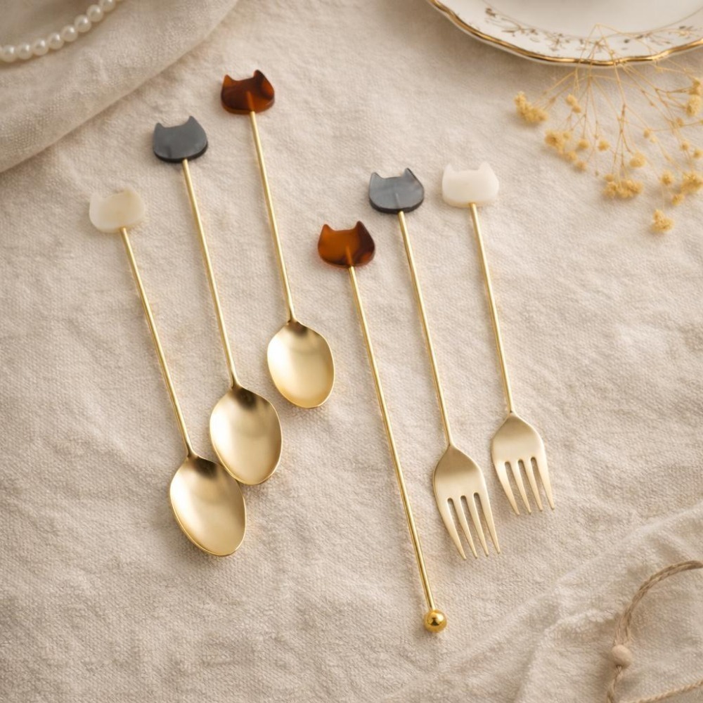 - 質感鍍金餐具:不銹鋼+鍍金設計,實用又有設計感