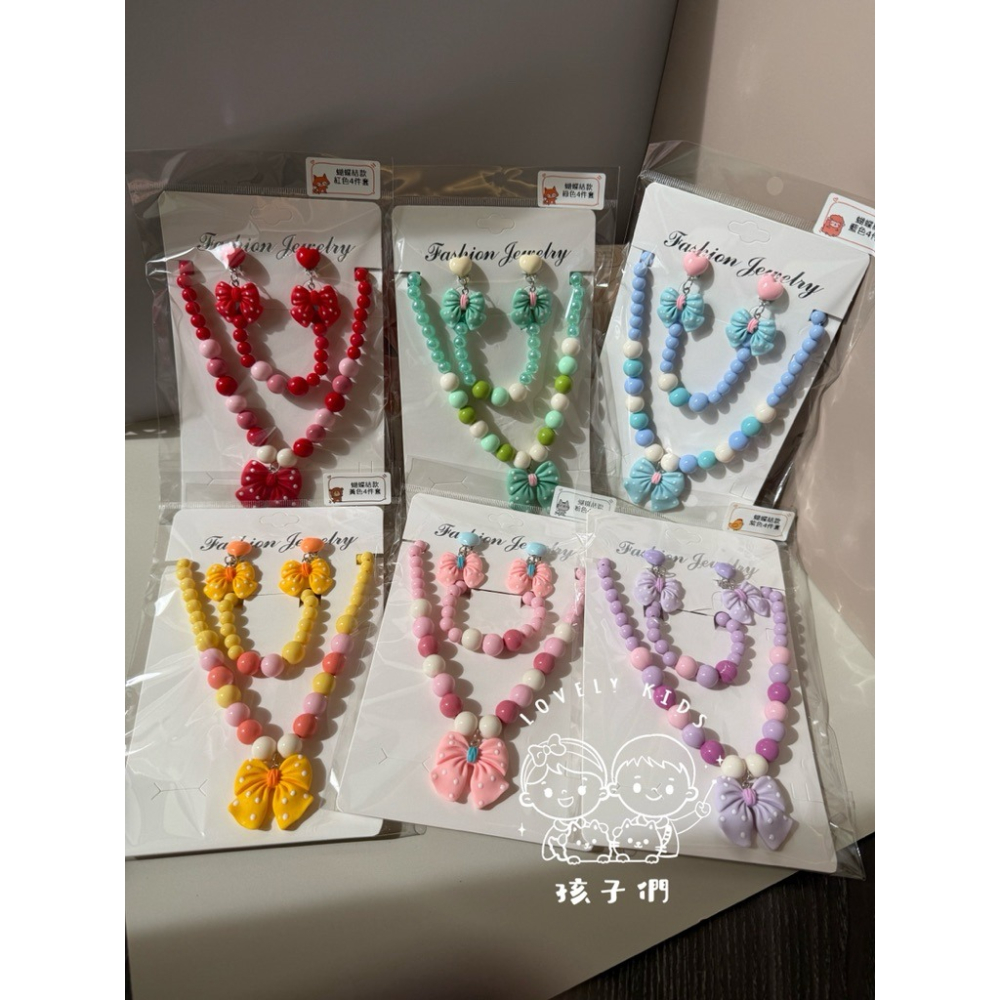 🎀蝴蝶結串珠項鍊組/兒童項鍊/兒童手鍊/兒童耳環/夾式耳環/串珠項鍊/生日禮物