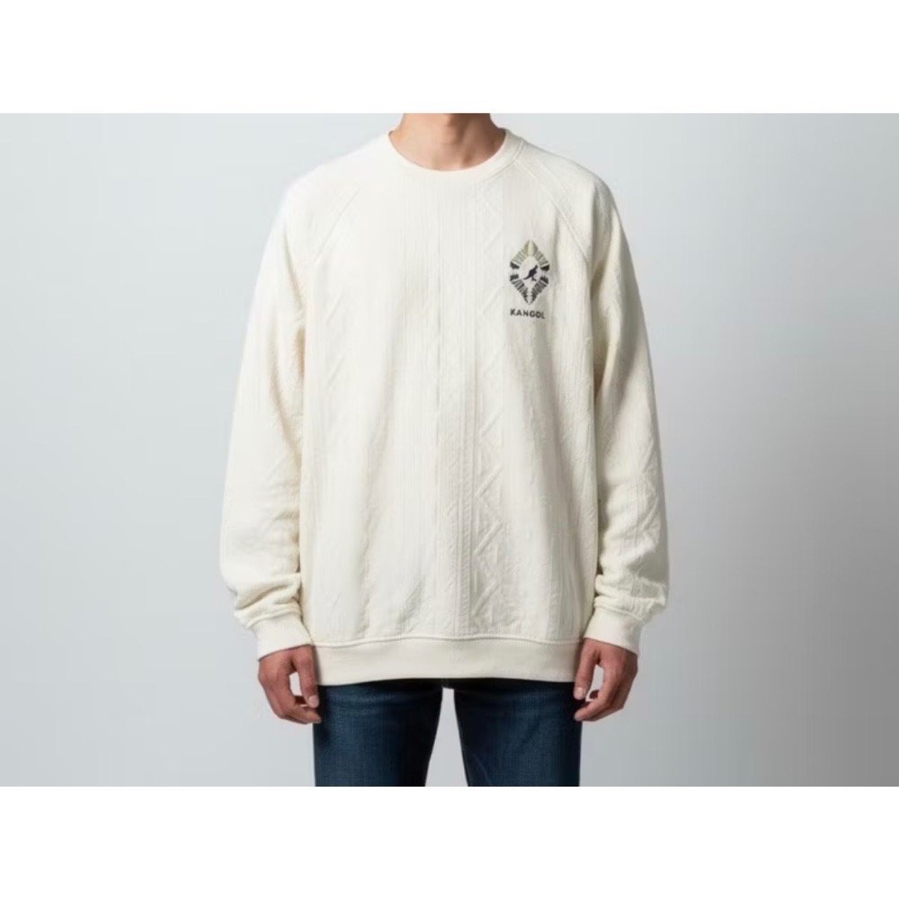 KANGOL袋鼠 中性圖騰大學T M號 全新未拆封 圖騰坑條大學T 時尚 針織 長袖 情侶裝 中性 衣服 上衣 日韓穿搭