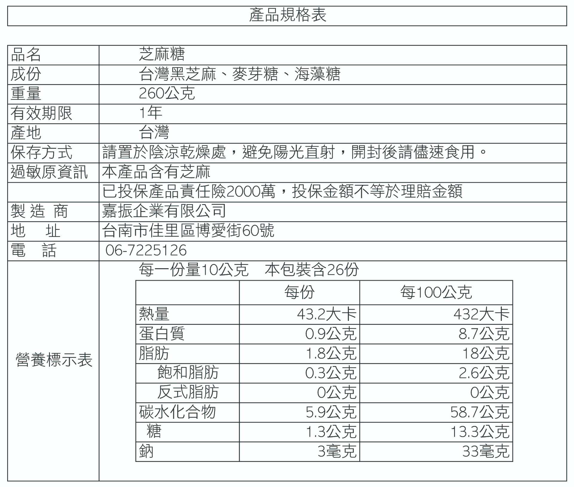 成份: 臺灣黑芝麻.麥芽糖.海藻糖