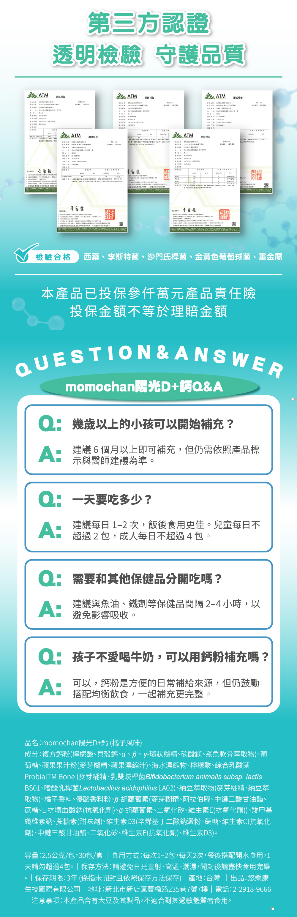 1.日本專利複方鈣市售最高吸收率鈣(95%吸收率),幫助牙齒與骨骼的正常發育
