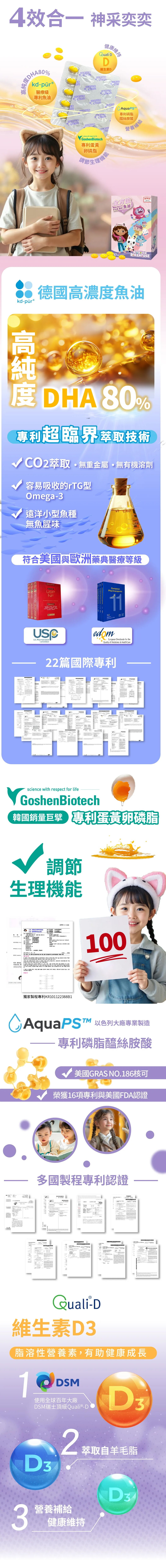 1.德國專利80%DHArTG型魚油,小孩黃金階段不煩惱