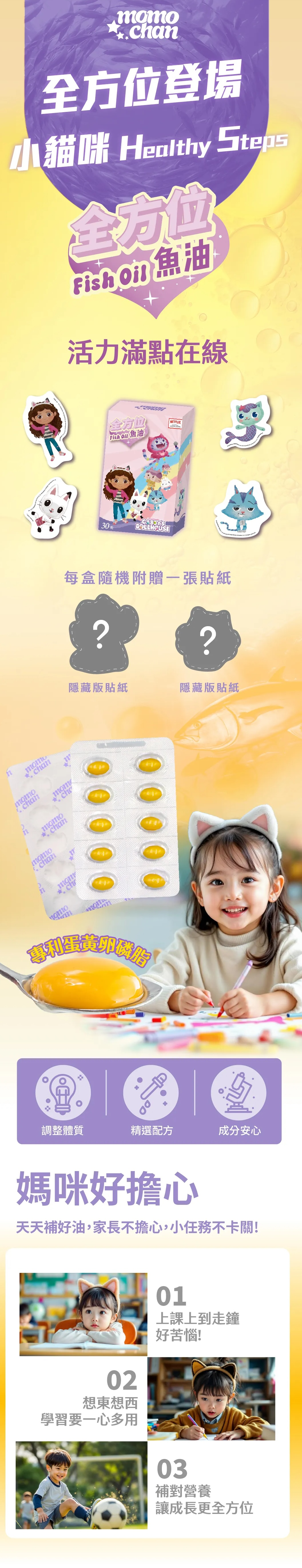 兒童保健食品 momochan 蓋比的娃娃屋 全方位魚油1盒(30顆/盒) 內附盲盒貼紙 高純度DHA 尚未有評價