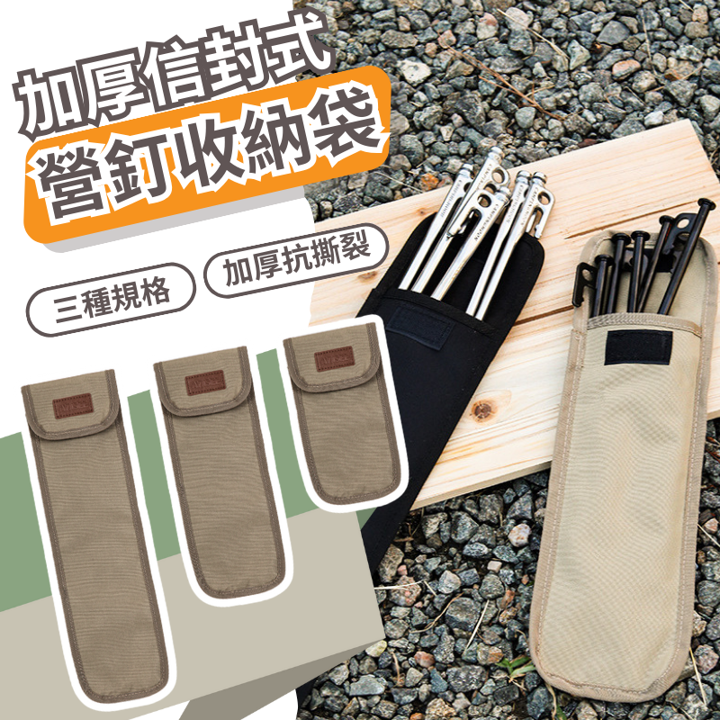 🏕️ 特色:使用加厚900D牛津布材質,所以用起來很牢固又防水,經久耐用還抗撕裂,三種尺寸可收納多款長度營釘,輕鬆整理收納整齊,裝備不再找不到下釘還手忙腳亂,是一款CP值極高的商品。