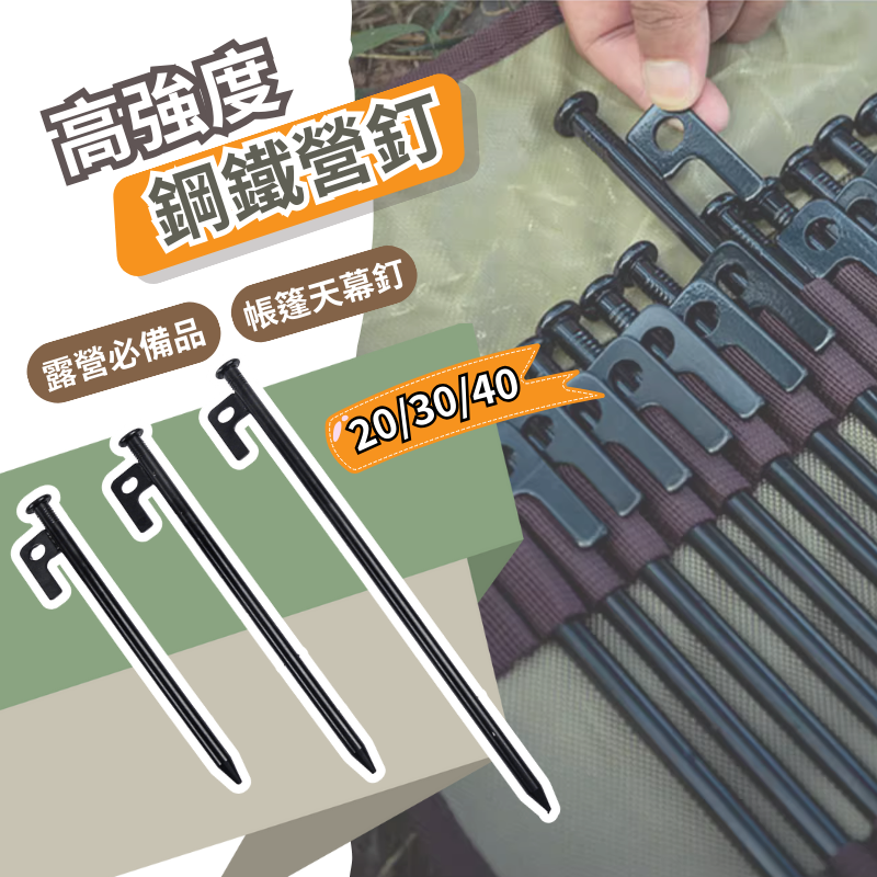 🏕️ 特色:鋼鐵製營釘不僅耐用不易彎曲斷裂,頂部加大防滑讓您營錘好下釘,人性化鈍頭設計不僅好破土也不刺傷人,強力固定不輕易滑動,三種長度營釘讓您根據當下使用狀況做選擇,如一般草地可使用20公分,碎石地及需要搭設天幕時可使用30公分,沙地則使用40公分,當然都取決您的使用習慣做搭配。