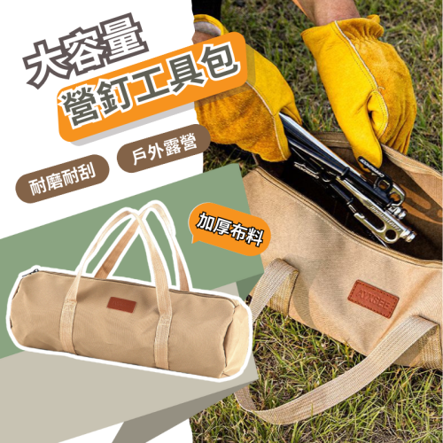 🏕️ 特色:升級加厚900D牛津布的收納包,不僅耐用、耐磨還抗撕裂,超大容量的圓筒型手提收納包可收納營釘、營繩、營槌等各種配件工具,雙側加固提把,裝滿工具也好提握不卡手,完全是戶外露營必備的工具袋,也可當作居家工具包平、修繕袋或小物整理袋也很方便。