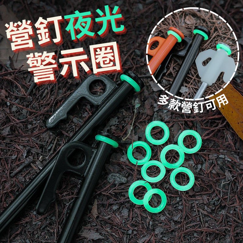 🏕️ 特色:適配各種款式直徑9mm左右營釘,直接套在營釘上使得晚上有夜光功能,能見度大增,增加夜晚行走及視線安全。