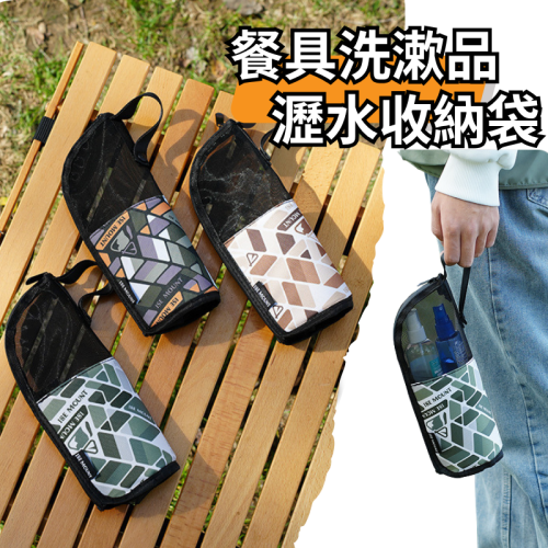 🏕️ 特色:平時可用於收納餐具及洗漱用品,清洗後直接變成瀝乾水份的晾曬網袋,網袋可站立也有提把可以吊掛,內部也有網兜用於收納較小的物品(如摺疊餐具),帶去浴室盥洗的時候也不用擔心潮濕滋生細菌,尼龍網袋通風能讓用品快速瀝乾。