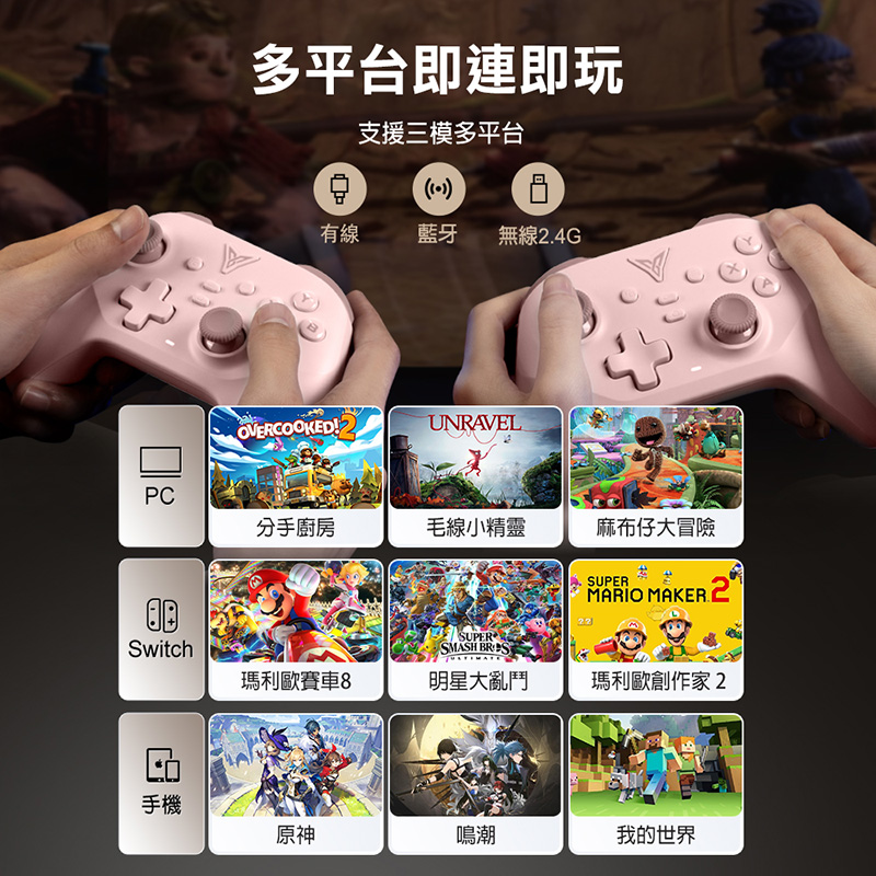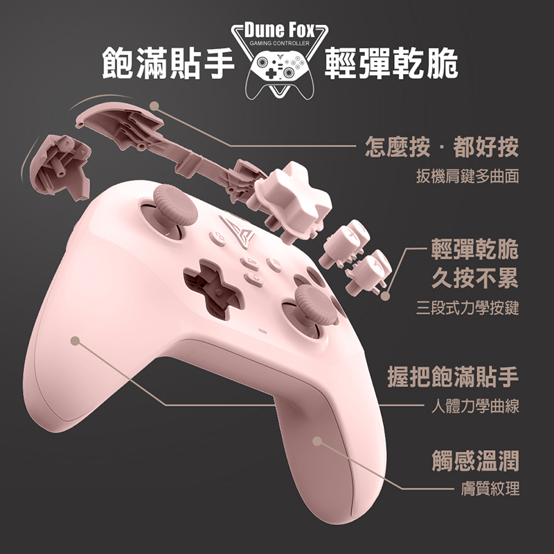 包裝內容 : 遊戲手把x1、充電線(USB to TypeC)x1、接收器x1、用戶手冊x1