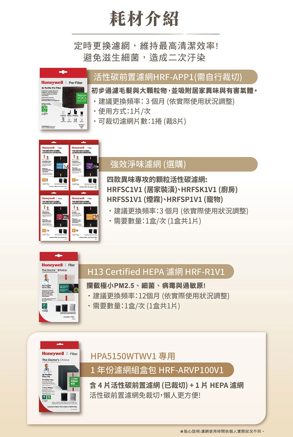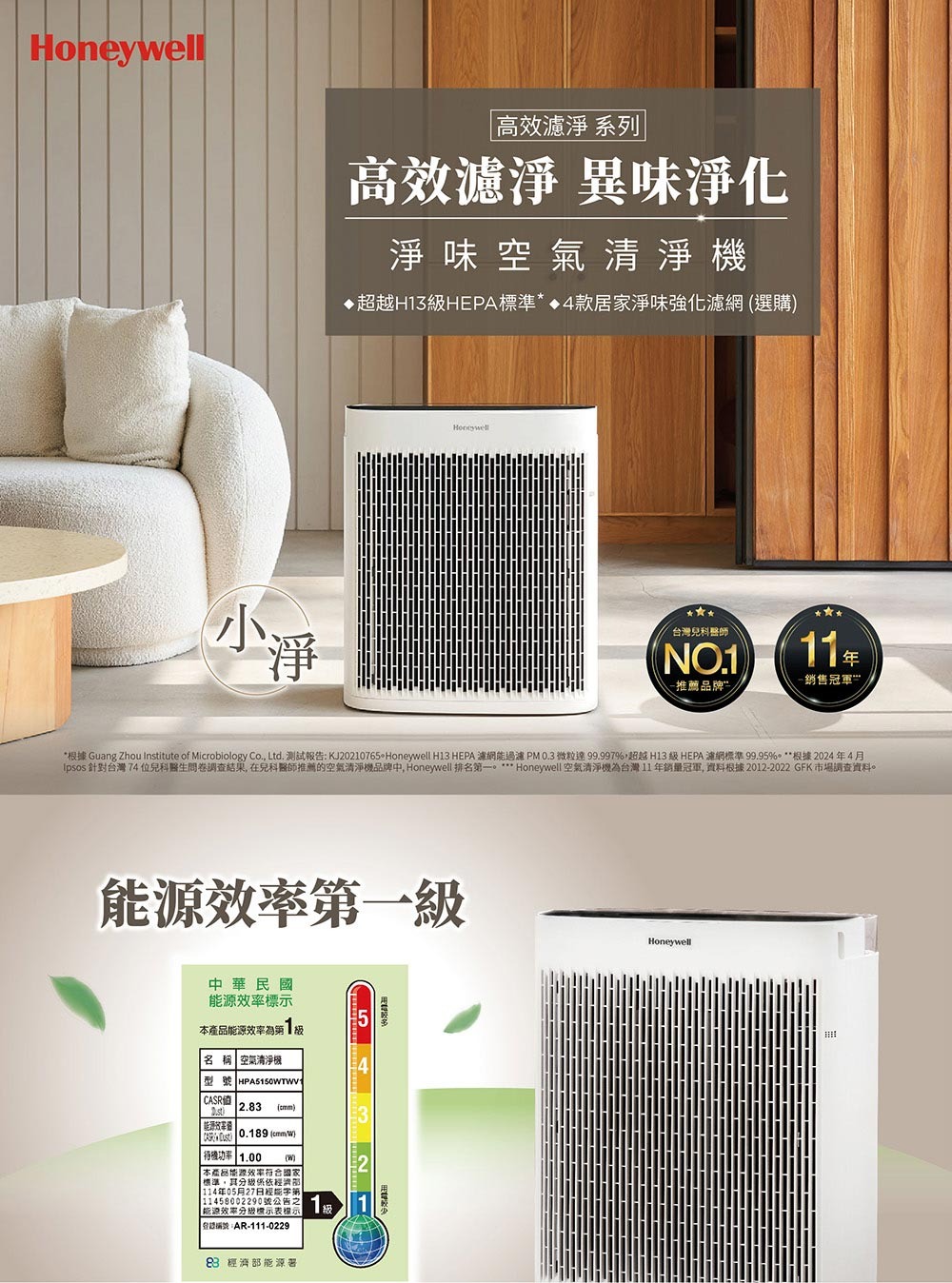 ●如欲加強淨味效果,可加購強效淨味濾網:HRFSS1(煙霧)、HRFSC1(家居裝修)、HRFSK1(廚房)、HRFSP1(寵物) (需另購1片,建議3個月更換一次)