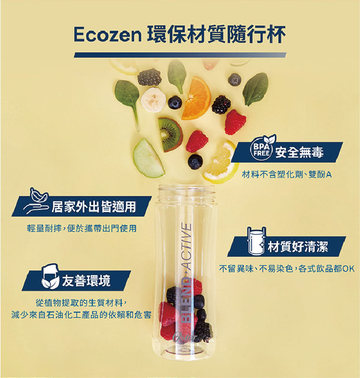 隨行杯:材質:改質 PCTG (Ecozen)/ 耐溫:85度C