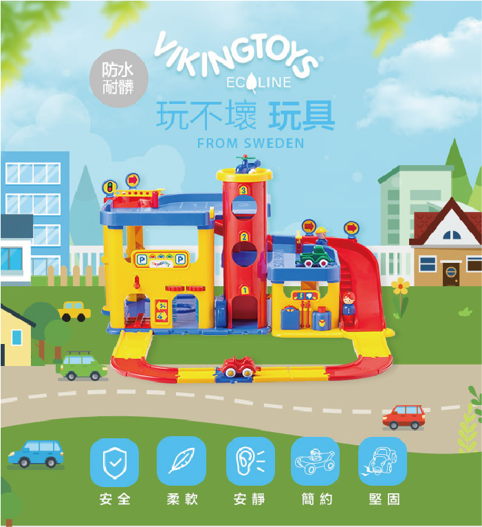 來自瑞典 Viking Toys 的 豪華三層停車場,設計精細擬真且充滿樂趣,孩子們可以盡情沉浸在車車世界的樂趣裡。