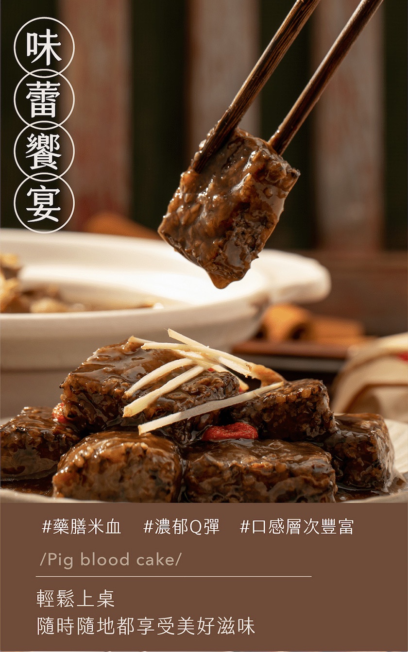 祖傳秘方當歸熬煮藥膳米血,口齒留香的軟嫩,咬一口頓時鼻腔內充盈著藥膳香,口感層次豐富,味蕾大饗宴。