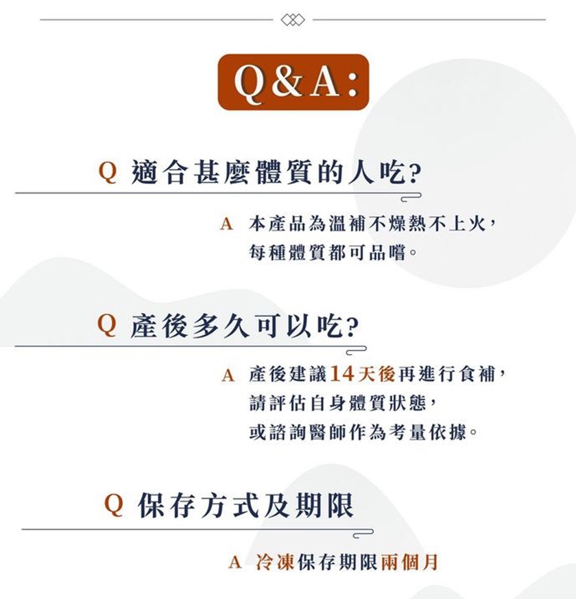 🔸主要成分:豬肉、枸杞、紅棗、當歸、黃耆、辛香料