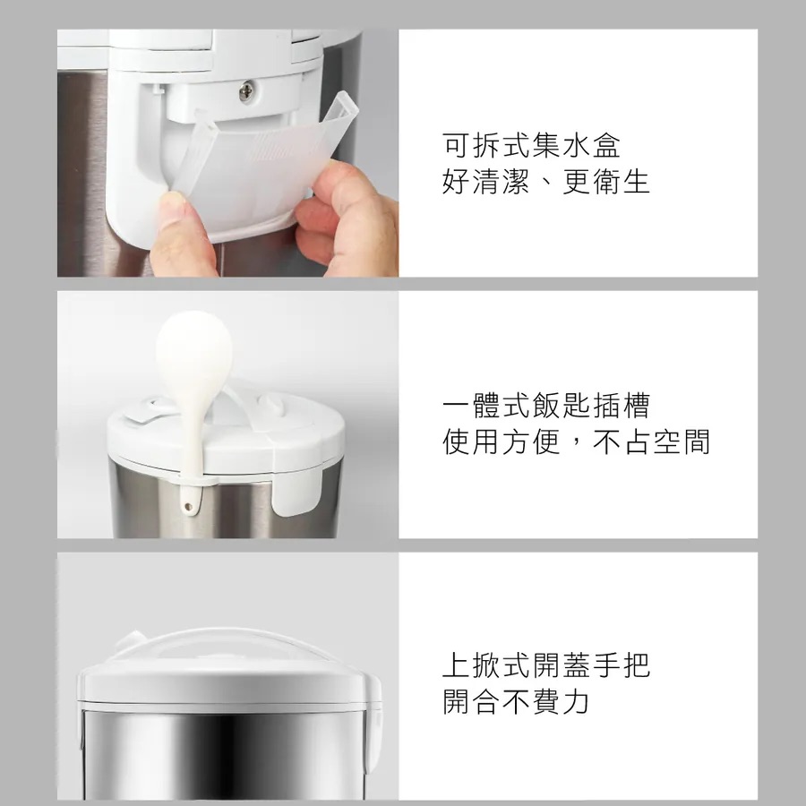 抗凝露內蓋設計,可減少凝結的水蒸氣回滴,維持米飯品質。