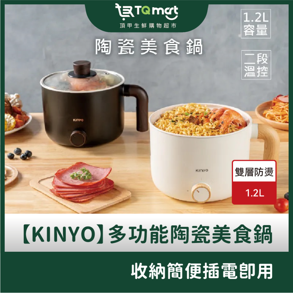 【KINYO】多功能陶瓷美食鍋 (FP-0876) 1.2L小巧容量 18CM口徑 8.5CM深 兩段溫控/安全防護