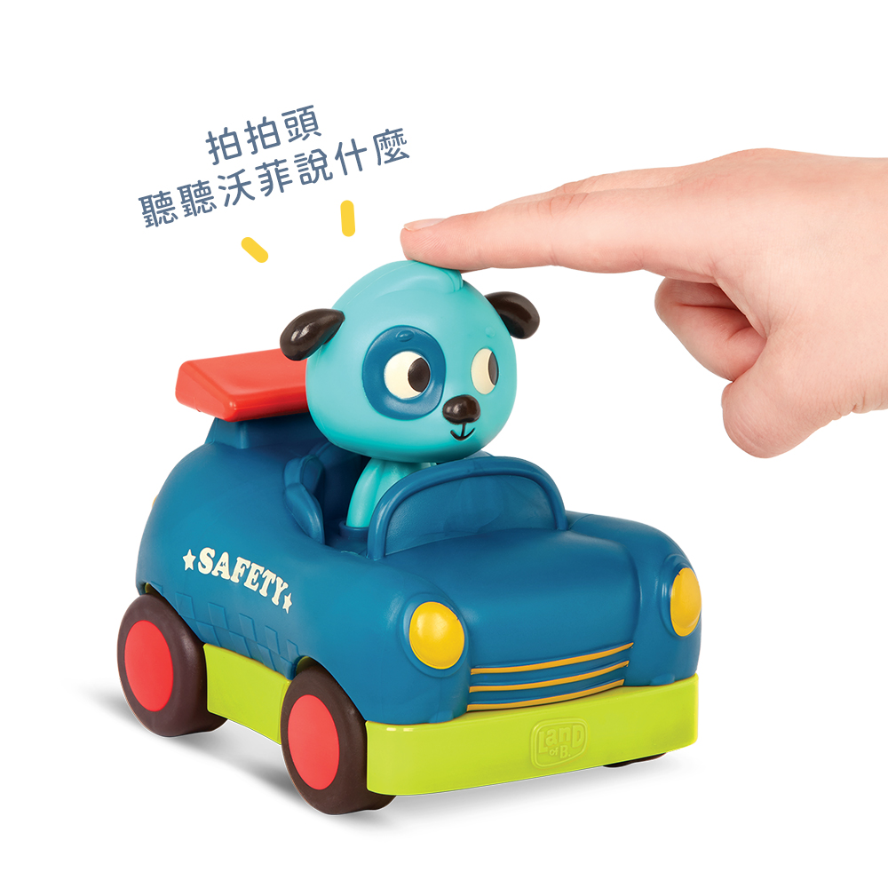 沃菲選手掌握方向盤,3 - 2 - 1 出發!左按鈕沿直線前進,加足馬力爬上小坡。右按鈕 360 度原地迴圈,轉向掉頭過彎道。急速衝刺也要安全駕駛,抵達終點線,給個鼓勵拍拍頭,聽聽沃菲說什麼?