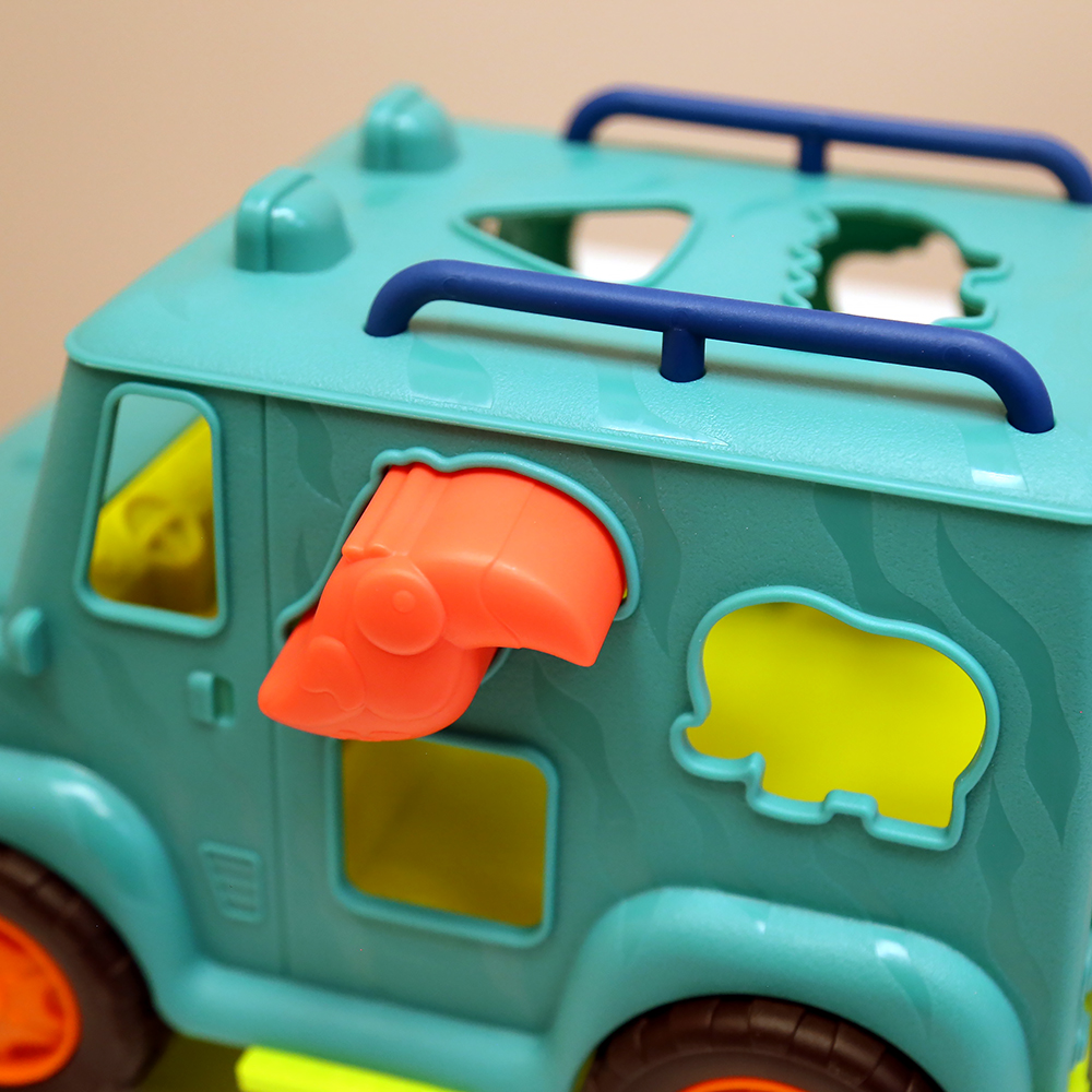 顏色繽紛的動物和幾何造型積木陪孩子練習形狀對應,發展精細動作、手眼協調及顏色認知。積木背面點綴不同形狀顆粒,增加遊戲時的觸覺刺激。地毯鋪成草原,注意沙發岩壁,保育員準備好出任務了嗎?