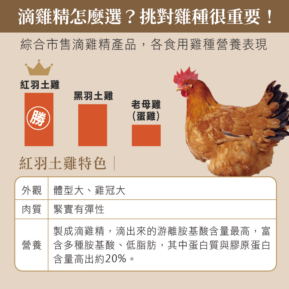 ✔ 特地選用台灣優質紅羽土雞,高成本高營養