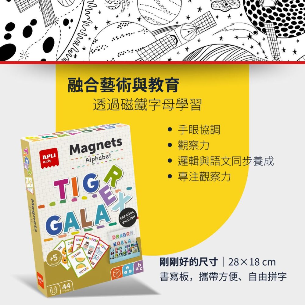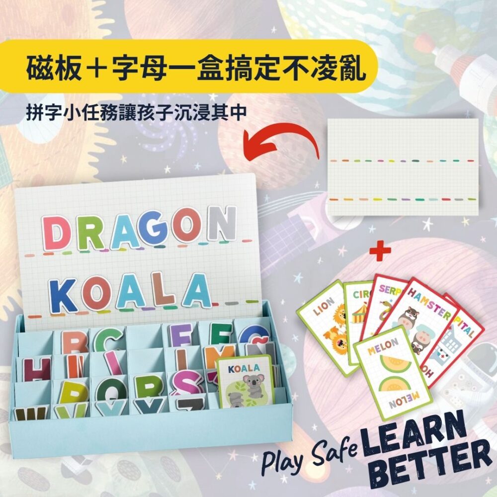 內容物|44個磁性字母和15張範例卡28 x 18公分的磁性書寫板