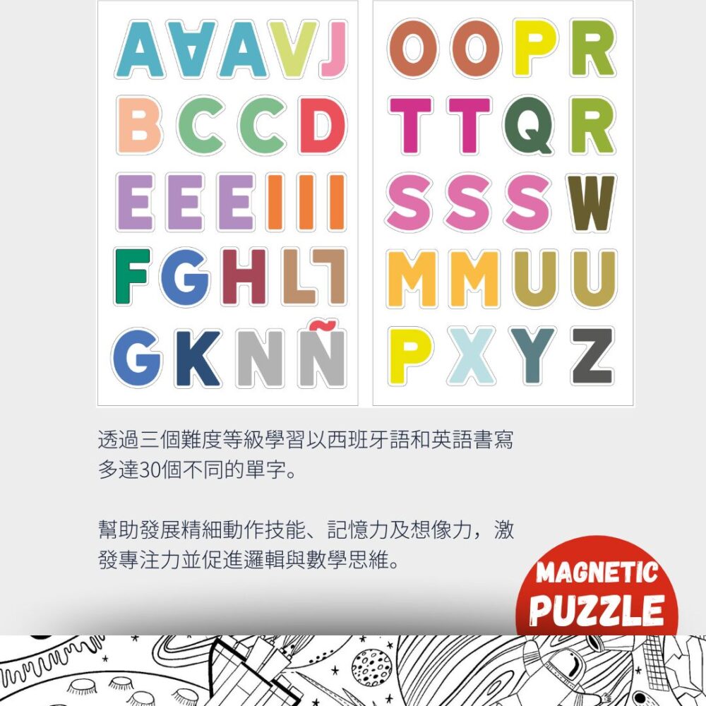 🧲 磁性書寫板設計:28 x 18 公分大小,方便孩子在書寫板上自由拼寫字母。