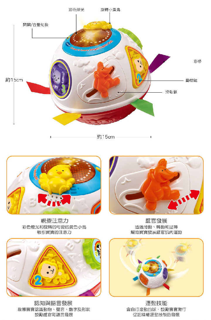 ‧教導寶寶認識動物、聲音、數字及形狀,鼓勵感官和語言發展。