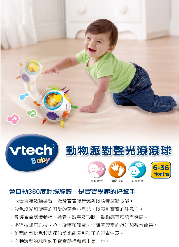 ‧自動滾動的球則鼓勵寶寶爬行和邁出第一步。