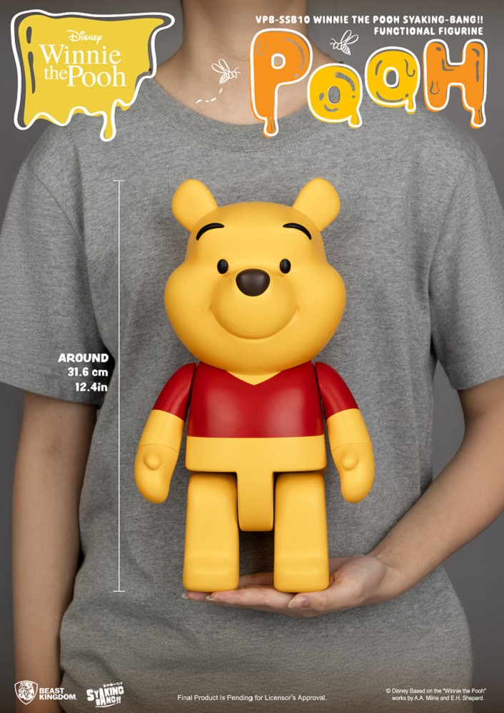 由「野獸國」旗下「SYAKING-BANG!!」系列推出,以大家最熟悉、最喜愛的迪士尼角色「小熊維尼」為主角,搭配創意儲金設計與獨家關節可動機能,頭部與四肢都能自由調整,隨心擺出你最喜歡的可愛姿勢,讓收藏變得更有互動感!整體塗裝細緻,還原維尼經典的紅色上衣和招牌療癒笑容,從挺挺的黑鼻子、圓滾滾的肚子,到可愛的小手,處處都展現出維尼溫暖又迷人的魅力。