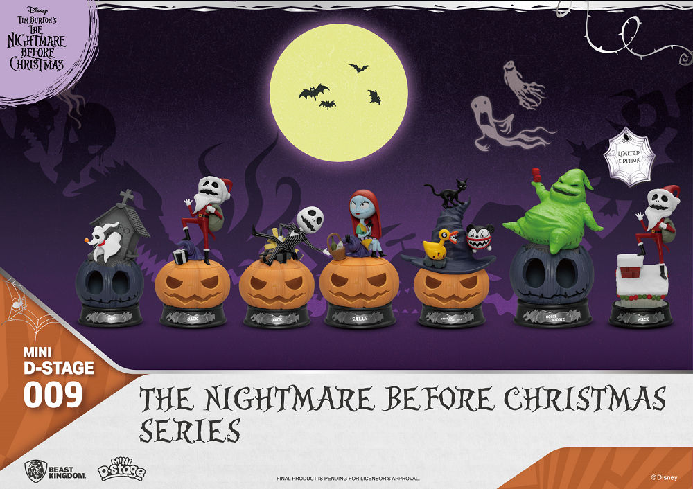 恐怖又熟悉的旋律響起,居住在萬聖鎮世界的首腦人物南瓜王傑克(Jack Skellington)出現了!這次他邀請了大家熟悉的居民們一起陪大家度過這充滿驚喜冬季節日,野獸國以旗下著名MDS(Mini D-Stage)系列,以最代表性的萬聖節南瓜造型地台搭配不同形狀設計與配色來呈現每位大家所熟悉的萬聖鎮的居民,包含經典服裝與聖誕老服裝版本的「傑克」在內,還有一路幫助他挽救聖誕節的「布娃娃莎莉」(Sally)、住在狗屋忠心耿耿的小夥伴零零(Zero)、惡名昭彰的大壞蛋烏基布基(Oogie Boogie)、以及他調皮小弟吸血鬼泰迪與亡靈鴨(Vampire Teddy with Duck),超傳神的表情配上活潑又生動姿勢,就同電影中的萬聖鎮居民正在為你準備今年的冬季節日來到!除此之外還有隱藏版聖誕節日聖誕老公公傑克版款,假扮聖誕老公公的傑克正準備進入你家的煙囪偷偷要送禮物給你喔!