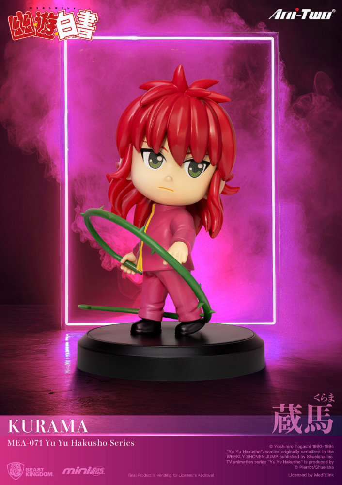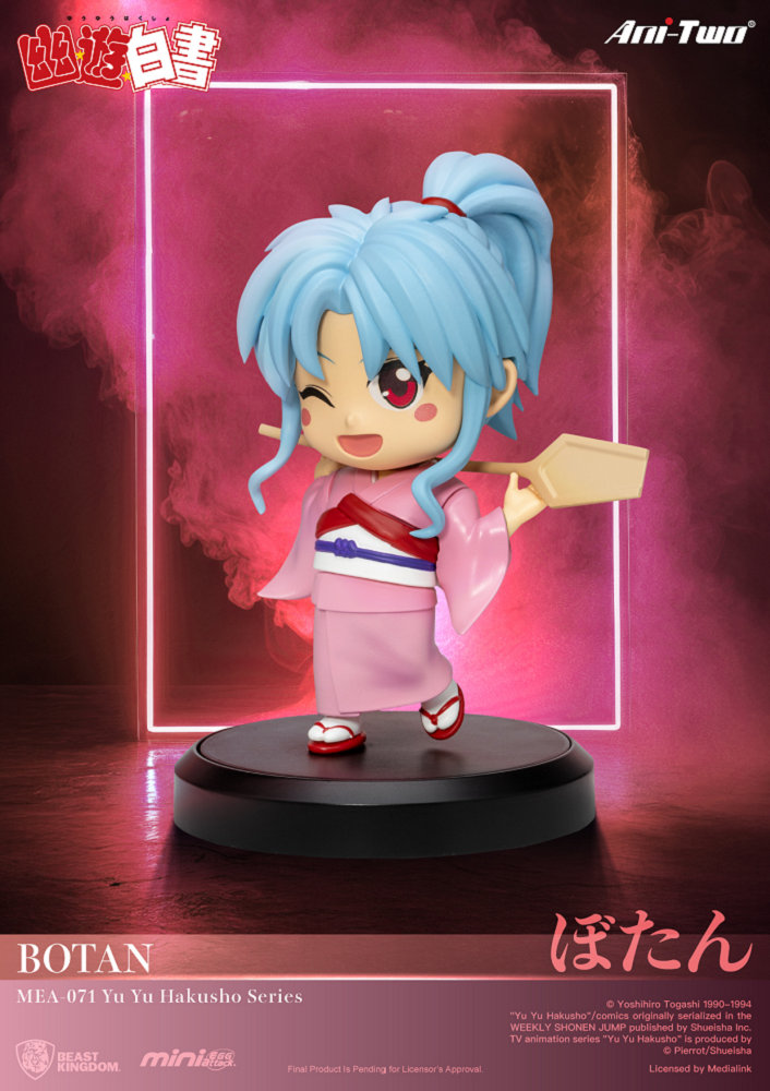 這次的盲盒延續MEA系列兼具可愛與帥氣的設計風格,重現主角團的經典角色。包含擁有「靈界偵探」身分、充滿正義感的浦飯幽助,熱血善良的(不良)高中生桑原和真,聰明冷靜、能操控植物的人類型態藏馬,恢復妖狐真身的妖狐藏馬,擁有強大妖力、冰女與人類的混血兒飛影,樂天開朗的靈界引路人牡丹,以及在閻羅王不在時擔任靈界「魔大王」代理人的小閻王。生動的神態與標誌性動作,讓人瞬間回到動畫中的經典場面!