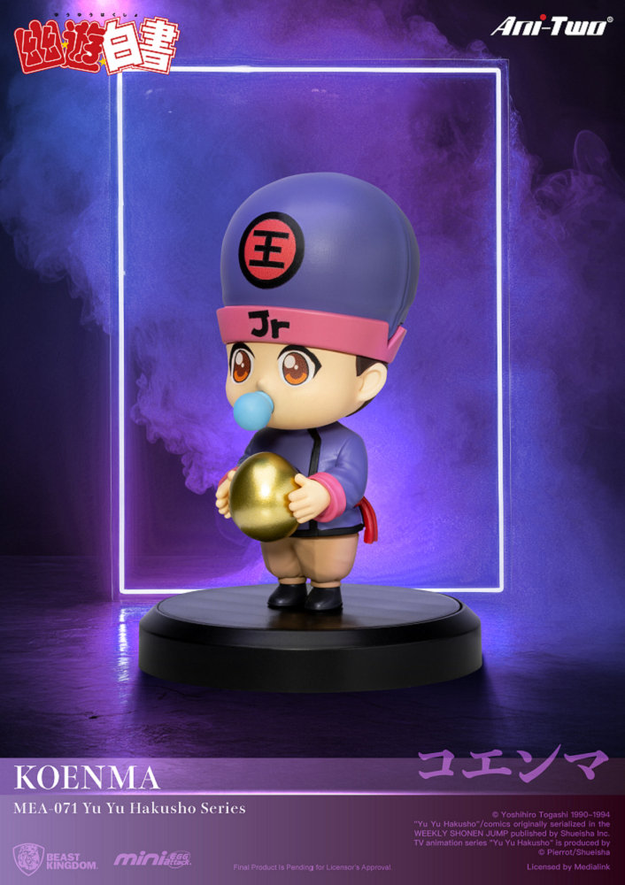 ⭐ 小閻王:閻羅王不在時的「魔大王」代理人,外表像嬰兒,但實際年齡超過 700 歲。他手持靈界獸的蛋,準備交給浦飯幽助進行最後試煉!