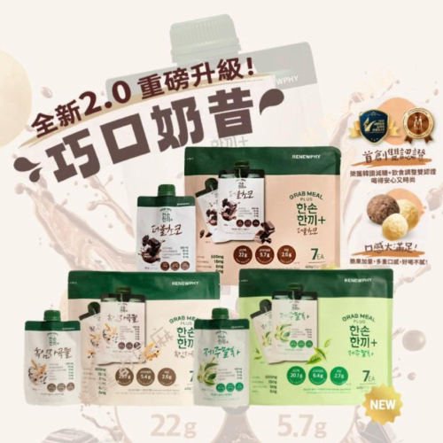 🇰🇷巧口奶昔2.0|官方授權 正規渠道|高蛋白|巧克力 芝麻 抹茶 玉米 地瓜 一袋內含七包 每包60g ‼️請認明經銷安心購買飲用、正規代理避免觸法。 🌟買得安心 喝得放心 | RENEW PHY 巧口奶昔 2.0 -80%甜度配方| 韓國唯一雙認證低糖奶昔 20.1g 高蛋白 ×17種益生菌,營養更全面 車前子粉+香蕉花萃取,加強膳食纖維與代謝守護 脆球加量升級,口感大提升 濃厚香醇×清爽低負擔,只加水也超順口 運動前後、代餐首選,隨時隨地輕鬆補給 韓妞熱銷愛用,低熱量也能高飽足