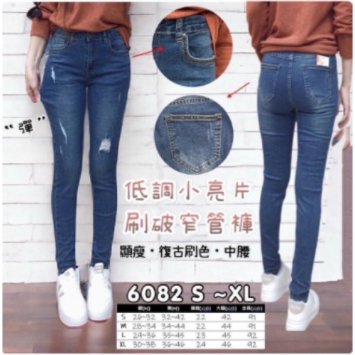 低調小亮片刷破窄管褲👖—XL(全長92)