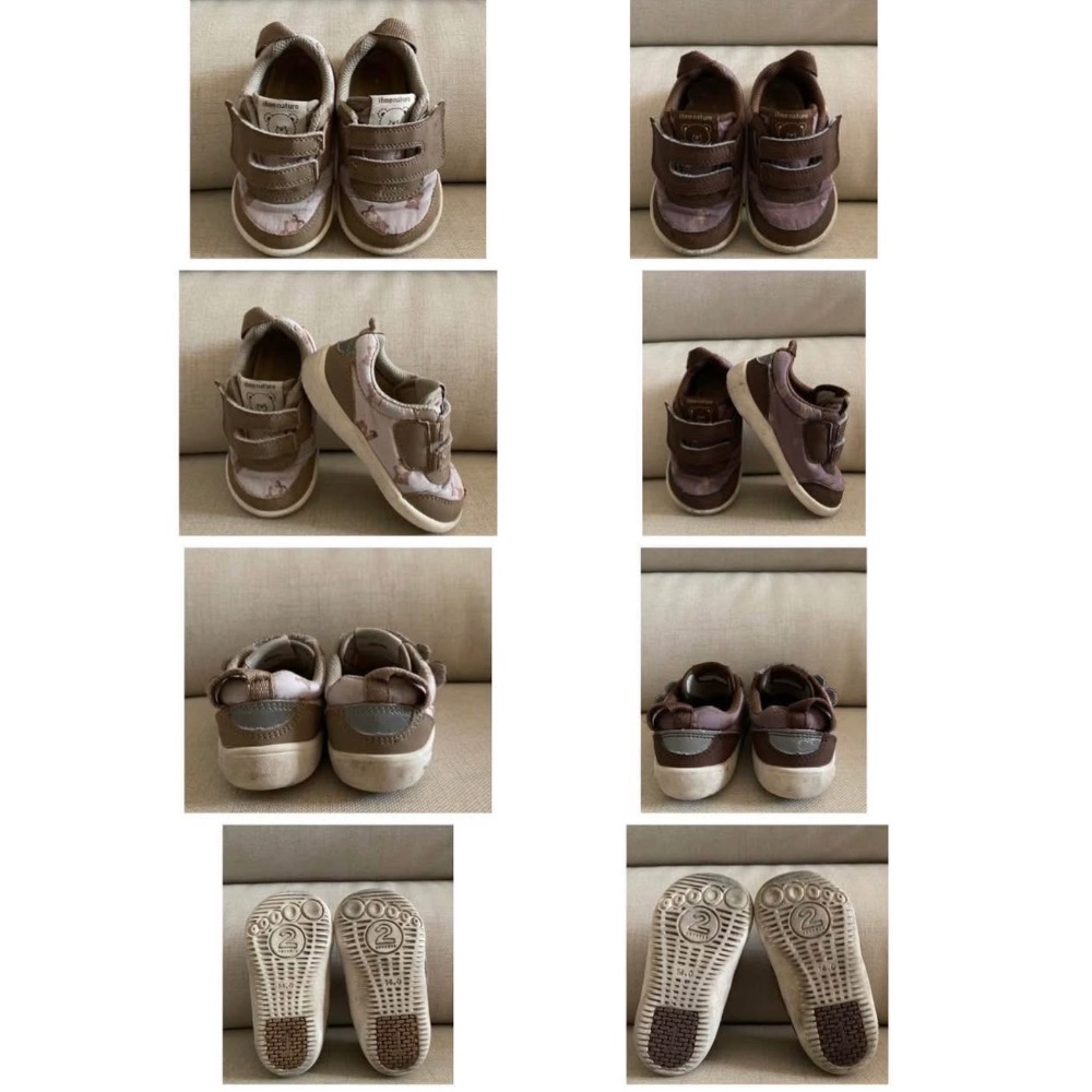 一次買兩雙給小孩交替穿,整體鞋況約7~8成新,已簡單刷洗曝曬消毒。