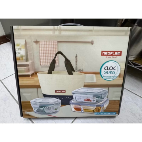 全新~ NEOFLAM Cloc Glass 耐熱玻璃保鮮盒 4件組