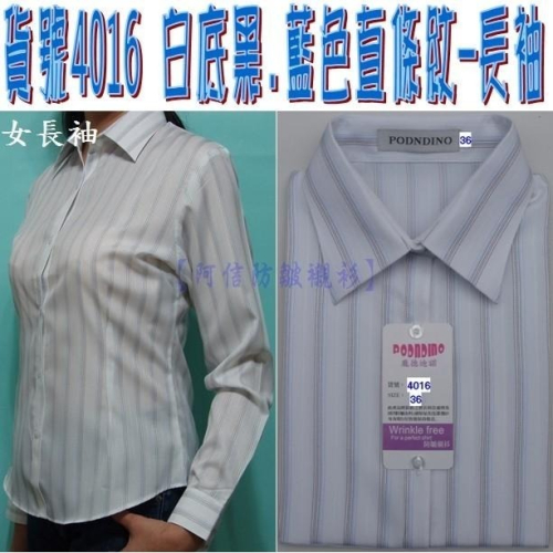 【阿信防皺襯衫】直條紋【女長袖】貨號4016白底黑藍色直條紋 ☆抗皺女襯衫