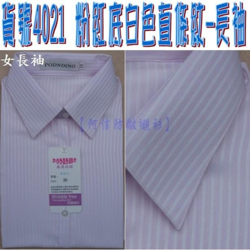 【阿信防皺襯衫】貨號4021 粉紅底白色直條紋-長袖 ☆抗皺女襯衫