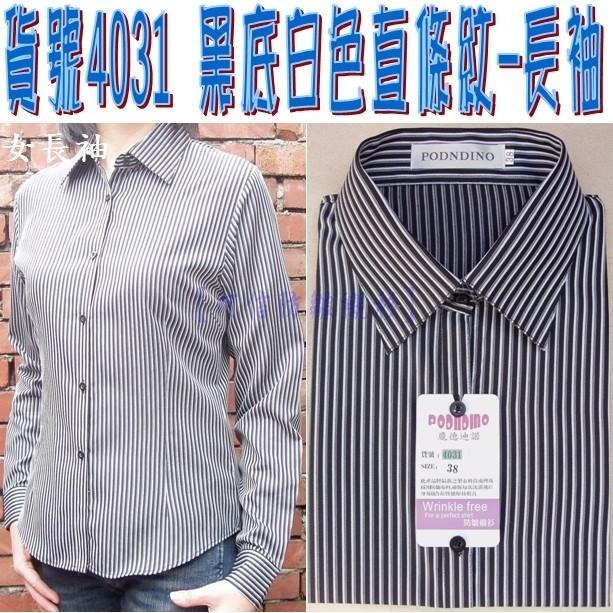 【阿信防皺襯衫】直條紋【女長袖】貨號4031黑底白色 ☆抗皺女襯衫